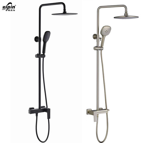 Moderna In Acciaio Inox 304 Spazzolato nero Produttore calda e fredda Bagno Doccia Colonna Miscelatore Set