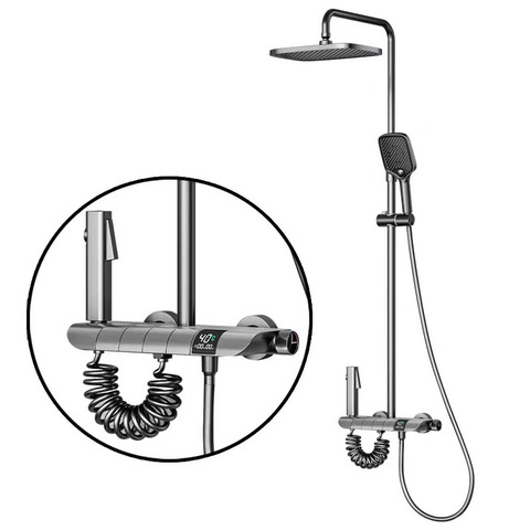 Doccia termostatica Set pianoforte digitale doccia sistema di rubinetto grigio grigio pianoforte nuovo nero acciaio inox moderno contemporaneo ceramica